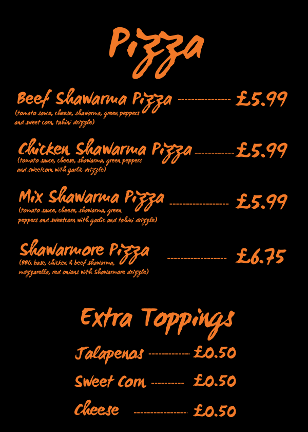 MENU Tasty Menu TodayAt Dubai Shawarmore, we serve bold, spicy modern fusion food made fresh every day.From juicy shawarma wraps and fusion pizzas to loaded fries, rice bowls, and breakfast deals, there’s something for everyone